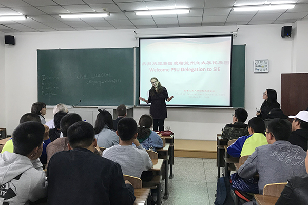 本网讯(通讯员 李宏)10月21-27日,美国波特兰州立大学计算机科学与工程学院副院长James Hook,英语强化学习项目部主任Julie Haun,项目顾问及英语教学专家Julia MacRae,国际项目部副主任Matthew Peipert等一行来我校访问。永利集团3044欢迎光临院长院长姜长泓会见了代表团,永利集团3044欢迎光临、计算机科学与工程学院、电气与电子工程学院相关负责同志参加了会见。