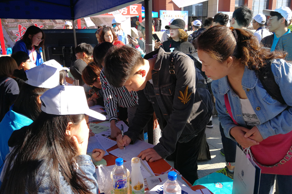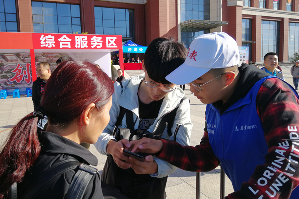 迎新志愿者热情接待新生及家长