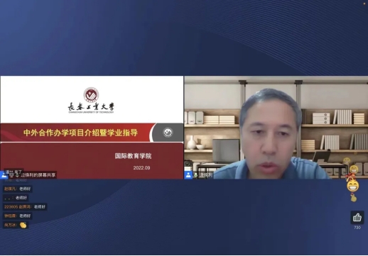 学院网讯(通讯员 李强)9月12日下午,永利集团3044欢迎光临中外合作办学项目介绍暨学业指导会于线上举行,副院长逄焕利为2022级全体新生作报告,细致地介绍了中外合作办学项目专业特点、优势,以及四年学习规划,为新生解答了出国留学、转专业、研究生推免等学生关心的核心问题。出席这次会议的有学院党委书记刘英军、院长崔高健、副书记钟诚、专职学生党支部书记李强、学院团委副书记包宇航及2022级全体新生。